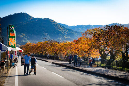 祭り期間中の土日祝(11月22日、23日、24日、29日、30日)限定で、ハゼの並木道が歩行者天国となります。