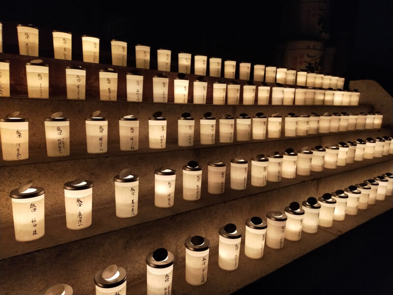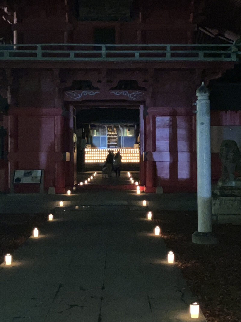菅原道真公の命日3月25日(旧暦2月25日)の前日夜に行われる道真公の御神霊に捧げられる神事が行われ、境内と参道に約500個の灯明が美しく輝きます。