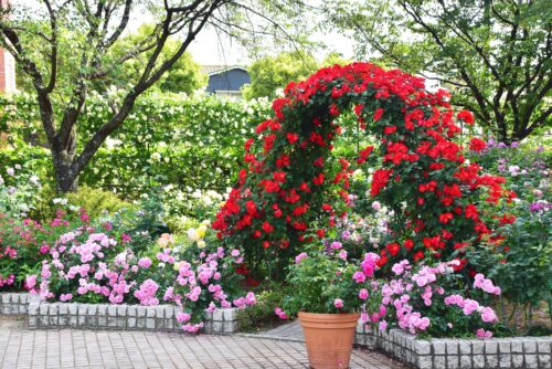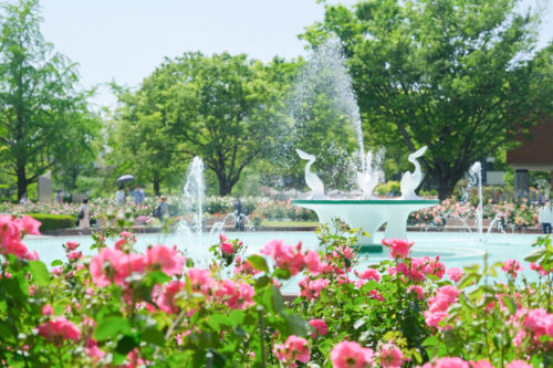 園内4カ所のバラ園に500品種2300株のバラが咲き誇り、様々な色、形、香りのバラをお楽しみいただけます。